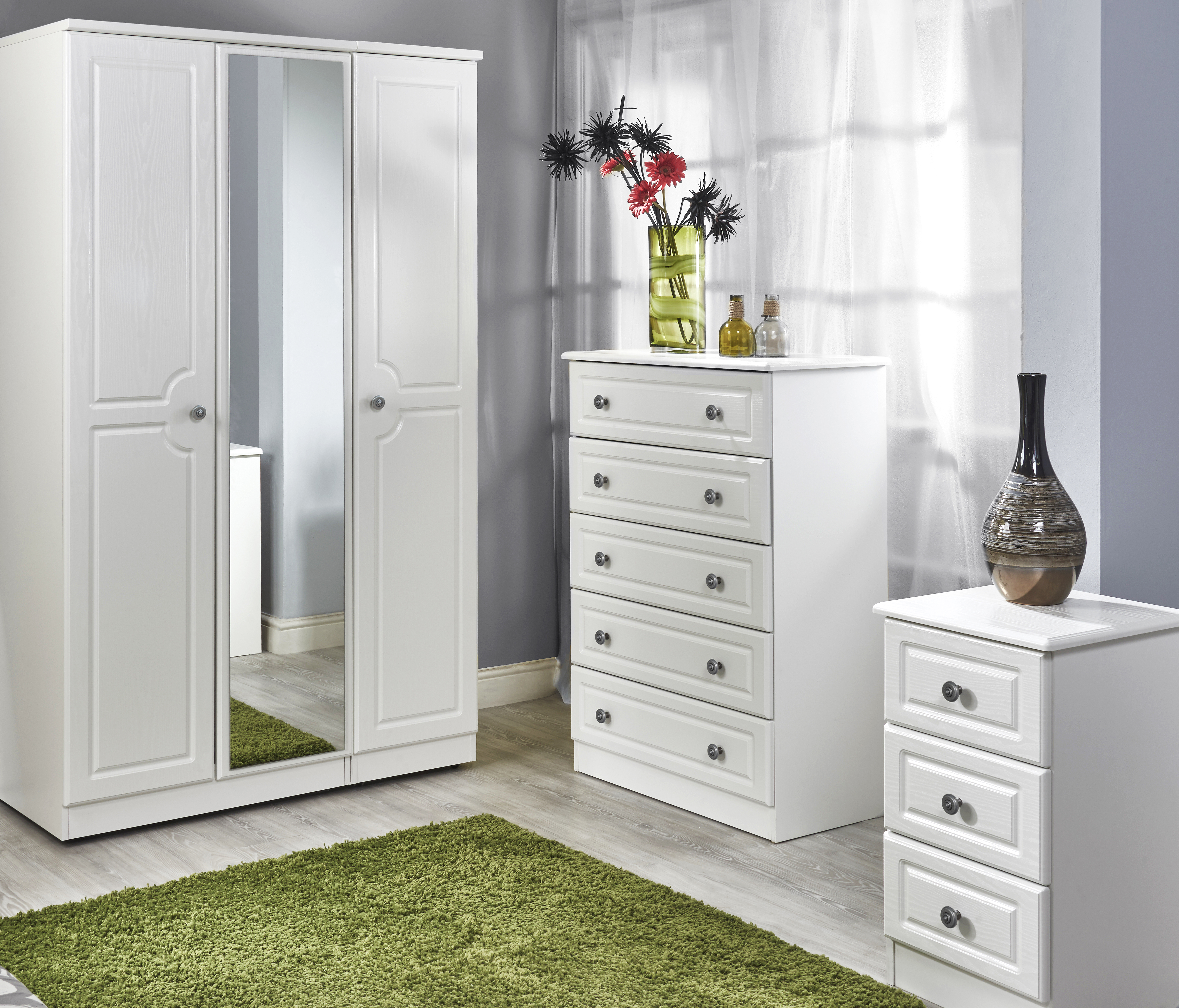 This lovely furniture set would be a beautiful addition to any home, with its wood effect finish and robust design. Boasting a stylish traditional look that will complement a wide range of décors. This set offers you plenty of storage. Built to last, these pieces feature scratch resistant veneer which resists the wear and tear of daily life.