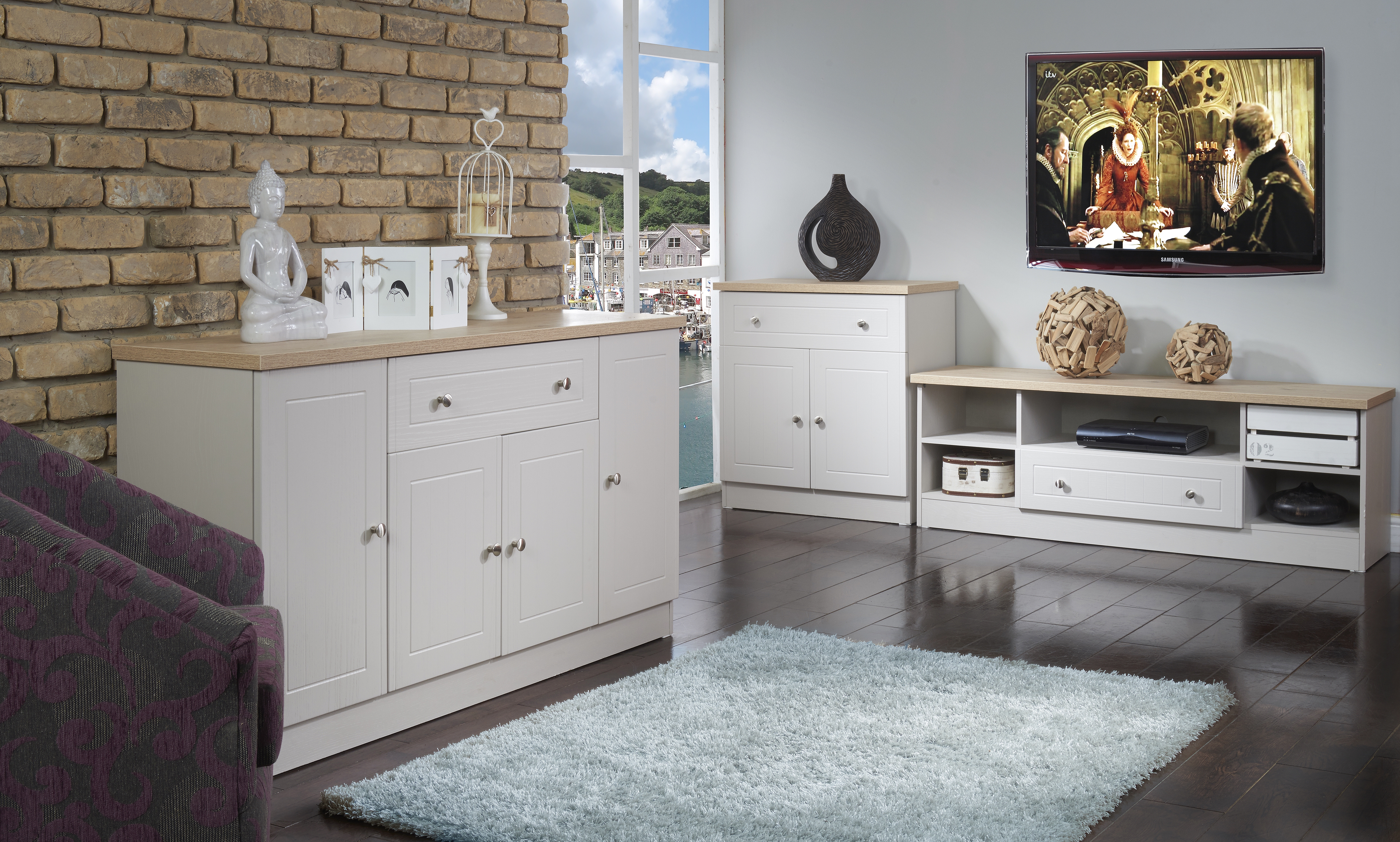 The classic, elegant Vienna range is available in a variety of painted wood effect finishes with natural wood effect tops and stylish chrome handles on all doors and drawers. This range boasts a classic and traditional design which will compliment a variety of traditional home décors.