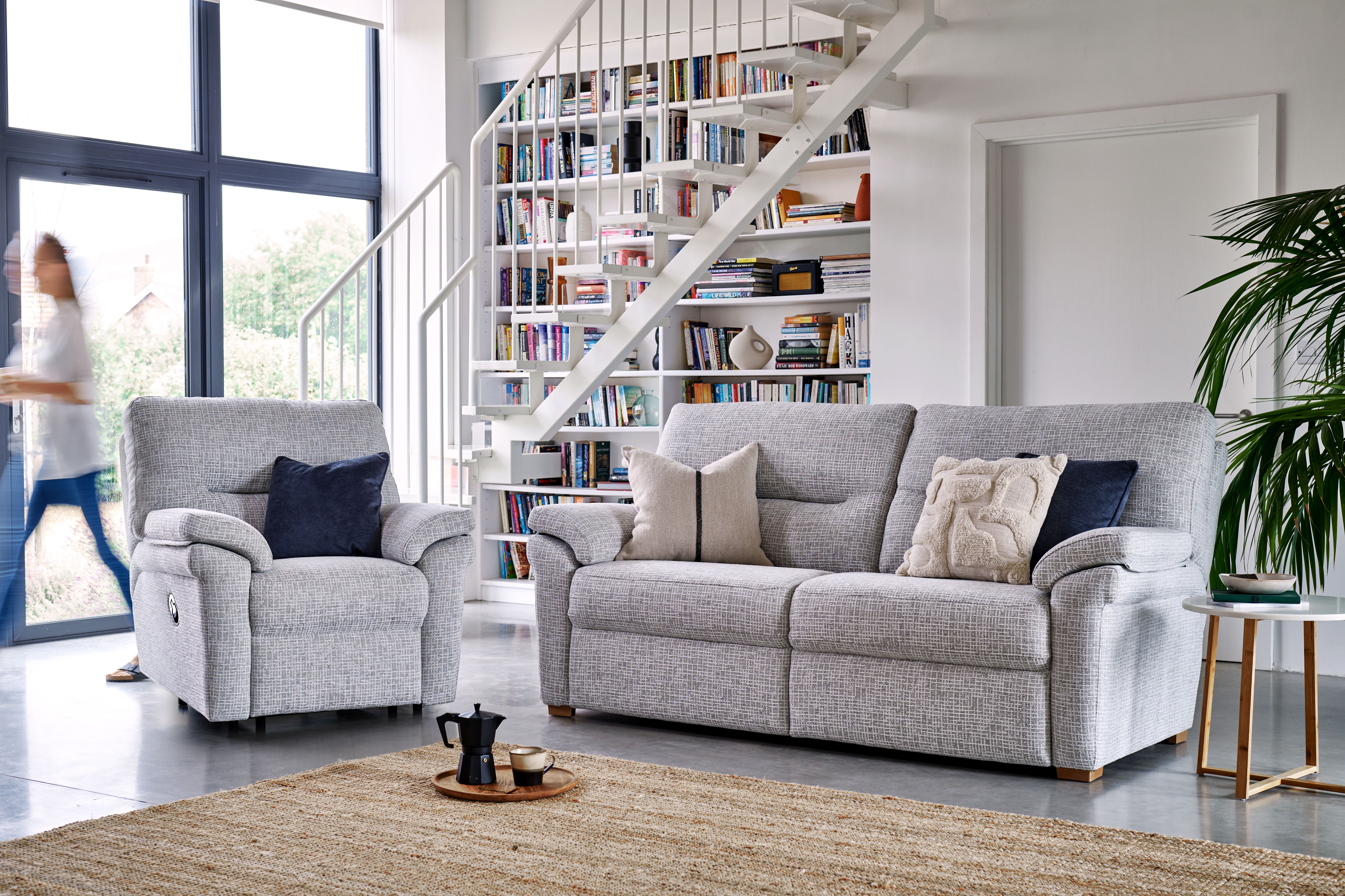 With clean, straight lines, Seattle offers contemporary elegance to any space. Crisp tailoring and sleek arm details. Full and sumptuous cushions deliver a deep and comfortable sit. Pad over chaise style recliner seats offer superb comfort. For ultimate comfort, Seattle offers the option of an additional lumbar support for tailored comfort on power units. Choose from a range of beautiful fabrics and leathers to suit your style. A choice of contrast stitching is available on Cambridge leathers in selected stores.