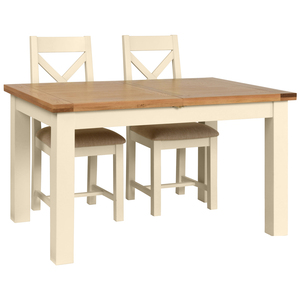 This dining table extends from 132cm to 198cm via a central runner system with two leaf inserts, designed to seat 6 people comfortably with the potential for two on the ends also. Supplied as standard in Ivory but also available in an additional 8 colours so there''s sure to be a colour to suit your home decor.