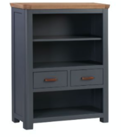 Introducing a stunning collection of furniture crafted from solid oak and selected oak veneer, finished in a luxurious midnight blue colour. The curved leg and table edge design brings a contemporary twist to this sought after range and will light up any dining or living room space within the home. The fresh modern look still retains an abundance of character. Copper and oak handles are included with each piece within the display.