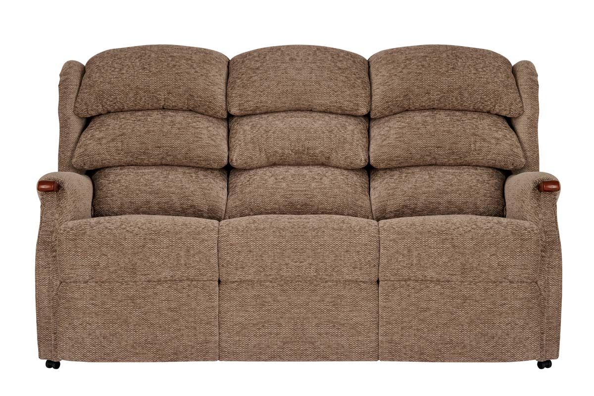 Designed for extra comfort with triple pillow back cushions and a choice of real wood grab handles, the Westbury is a traditional, yet comfortable recliner. Available in Grande, Standard, and Petite sizes, with matching fixed settees. All models are available with or without knuckles in fabric or leather. Please note, Cloud Zero motor function is available on power riser recliner models. See motor options for pricing.