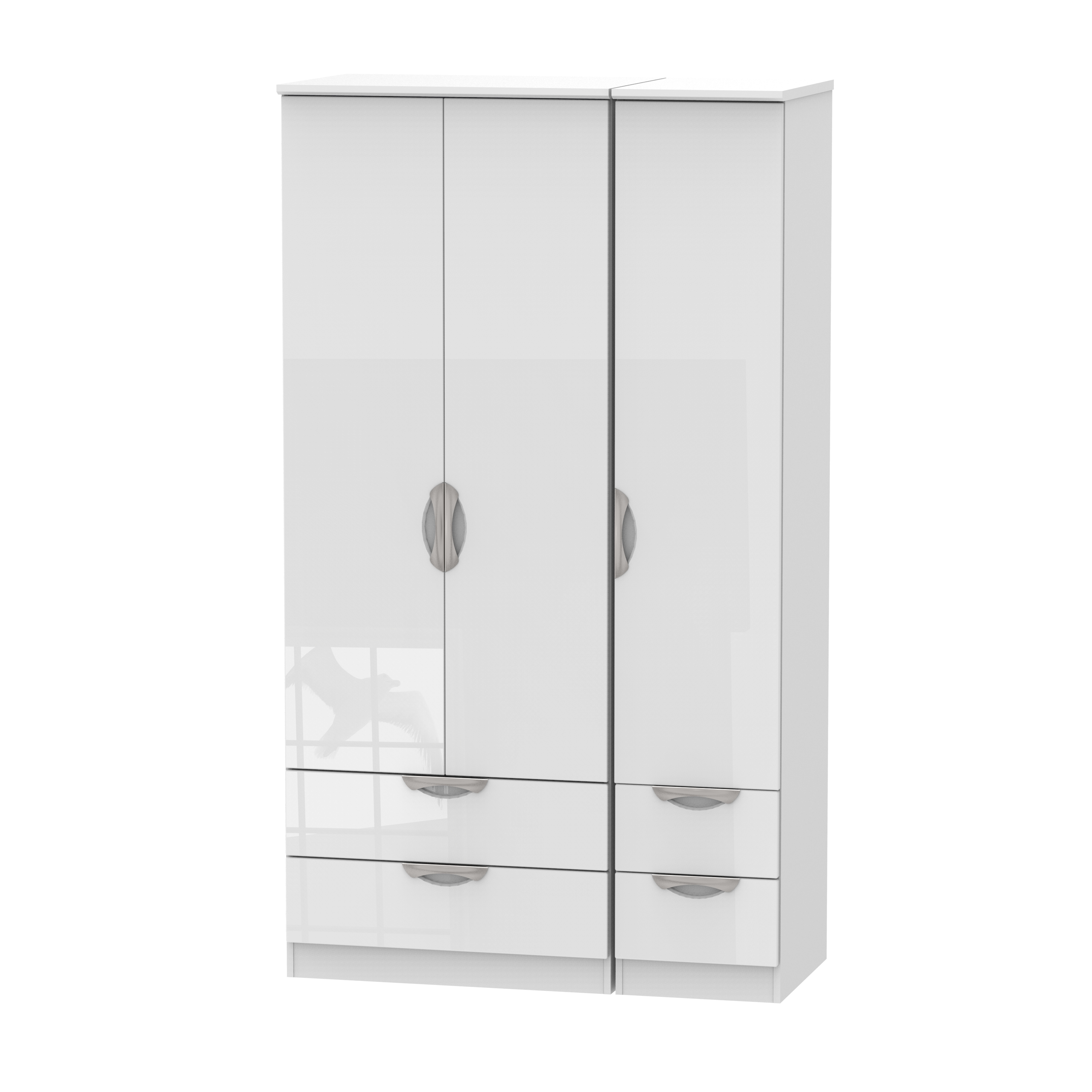 Gloss drawers and doors are complemented by distinctive cut-out handles and a smooth wood finish. Boasting a clean, contemporary look and pleasing practicality, this furniture range makes a seamless addition to any modern looking home. The range offers an array of practical, organised space. All pieces have a scratch-resistant veneer to help prevent the wear and tear that comes with everyday usage, while the gloss drawers and doors are complemented by distinctive cut-out handles and a smooth wood finish for a great mix of style and functionality.
