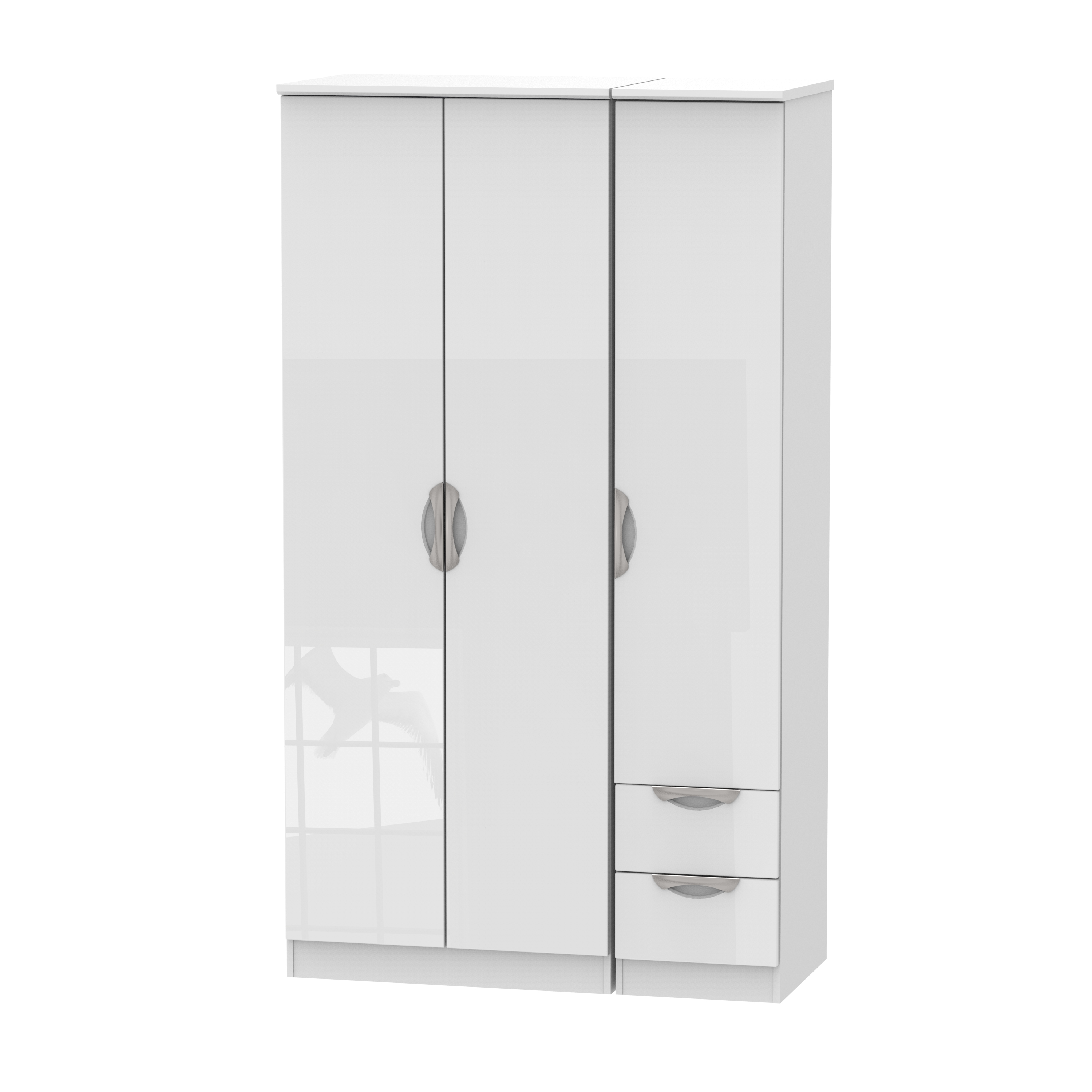 Gloss drawers and doors are complemented by distinctive cut-out handles and a smooth wood finish. Boasting a clean, contemporary look and pleasing practicality, this furniture range makes a seamless addition to any modern looking home. The range offers an array of practical, organised space. All pieces have a scratch-resistant veneer to help prevent the wear and tear that comes with everyday usage, while the gloss drawers and doors are complemented by distinctive cut-out handles and a smooth wood finish for a great mix of style and functionality.